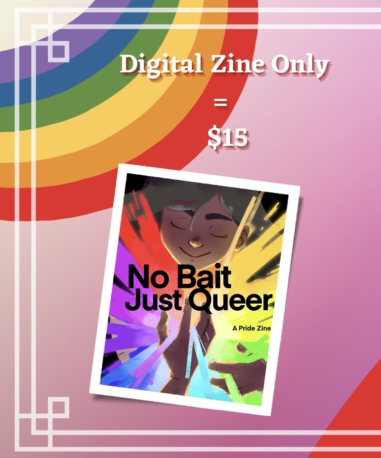 Thank you for purchasing the No Bait Just Queer Zine. All proceeds will go to The Trevor Project, The Ali Forney Center, Stonewall UK, and Mermaids.